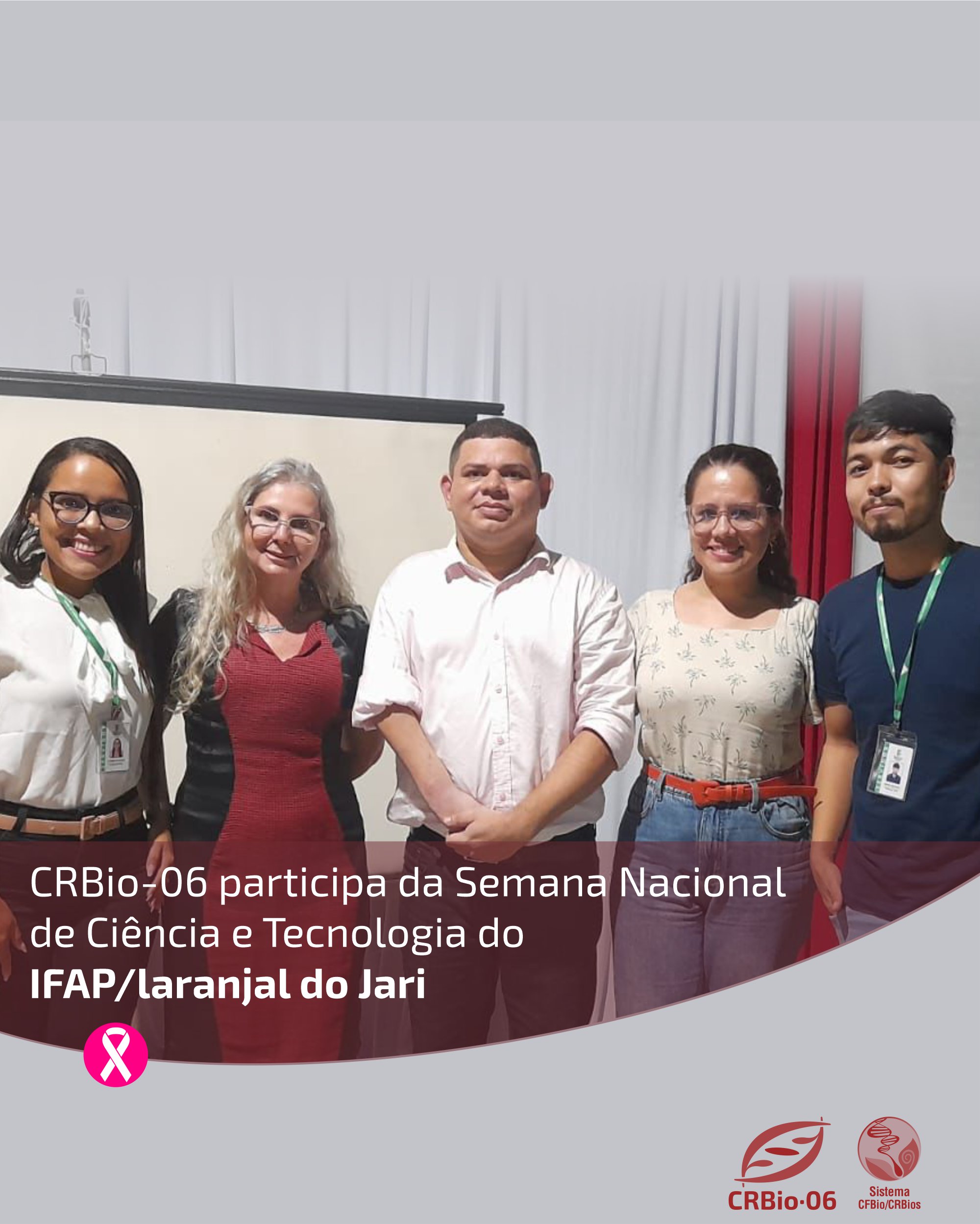 O CRBio-06 participou nesta terça 18 da Abertura da Semana do Biólogo no Instituto Federal do Amapá (Campus Laranjal do Jari), tendo como representante o Conselheiro suplente Lucas Santos Júnior.