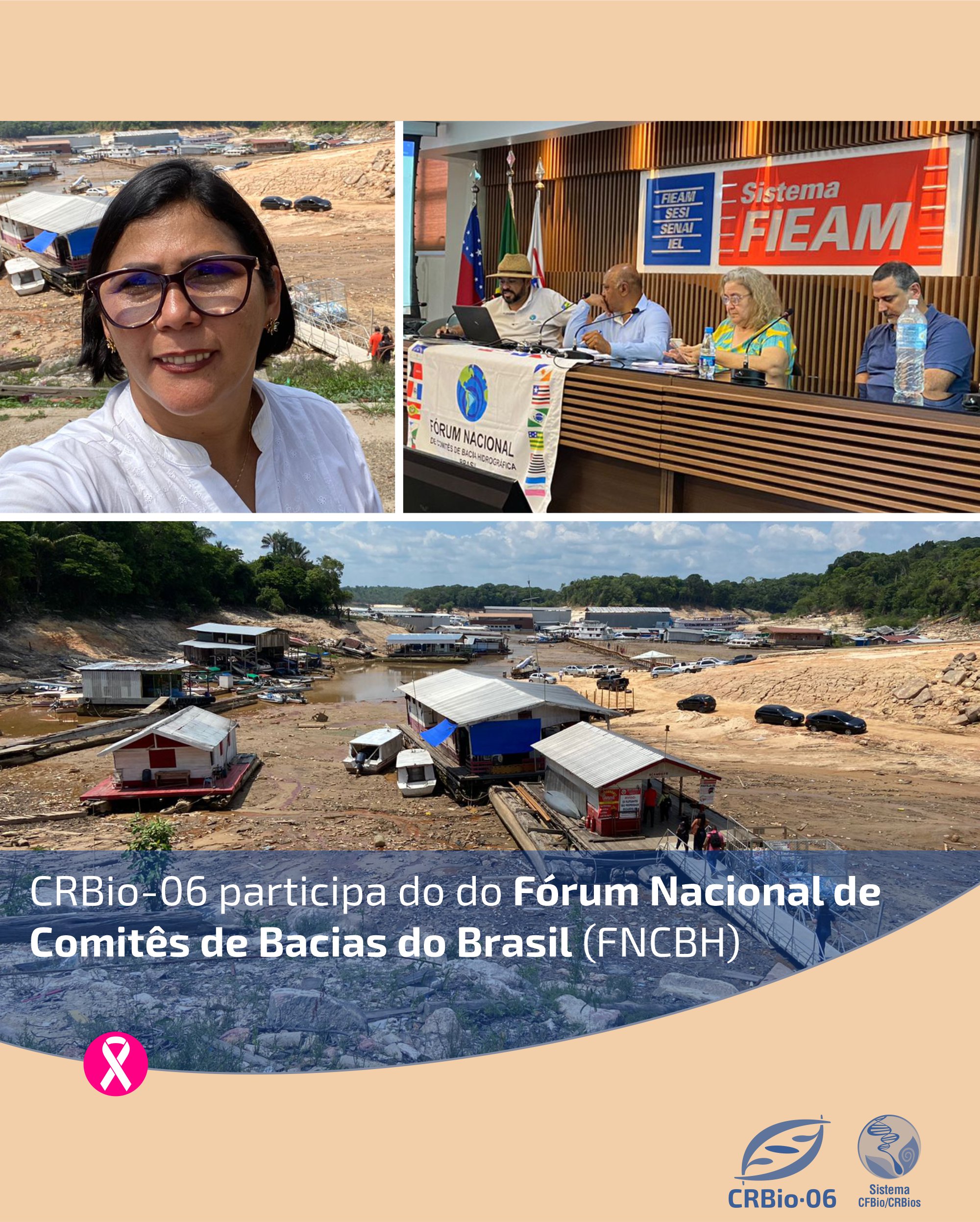 Nesta terça (18/10) o CRBio-06, representado pela Bióloga e Ex-Conselheira Solange Damasceno, participou da visita técnica realizada que o Colegiado Coordenador do Fórum Nacional de Comitês de Bacias do Brasil (FNCBH) fez à Bacia Hidrográfica do rio Tarumã-Açu para averiguar a situação da vazante das águas, no intuito dos membros dos Comitês de Bacias do Brasil observarem e contribuírem para o fortalecimento da agenda de recursos hídricos do estado do Amazonas e do país.